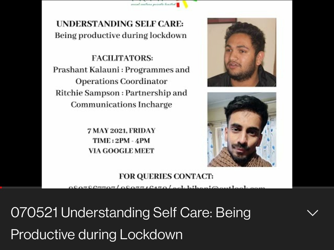 7 May 2021 Understanding Self Care: Being Productive during Lockdown