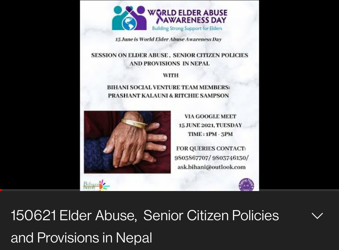 15 June 2021 Elder Abuse, Senior Citizen Policies and Provisions in Nepal