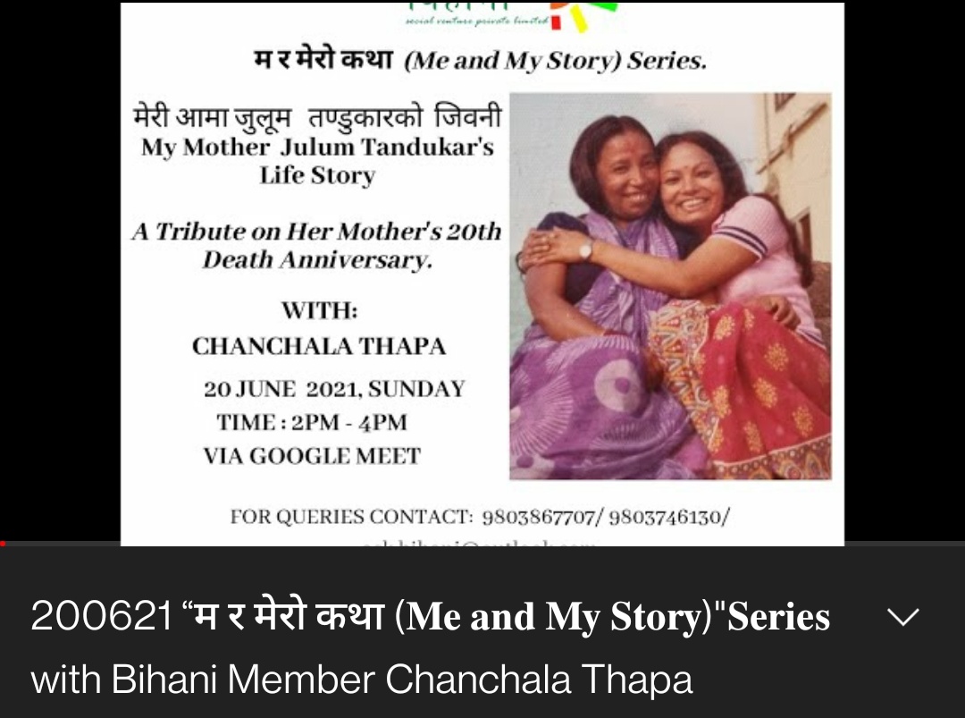 20 June 2021 “म र मेरो कथा (𝐌𝐞 𝐚𝐧𝐝 𝐌𝐲 𝐒𝐭𝐨𝐫𝐲)”𝐒𝐞𝐫𝐢𝐞𝐬 with Bihani Saathi Ko Saathi & Resource Pool Member Chanchal Thapa